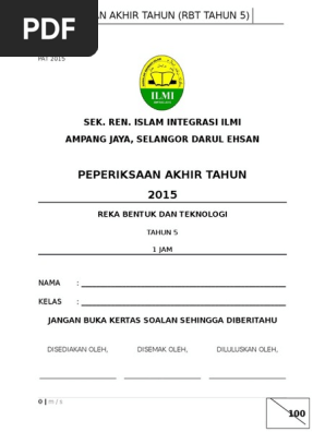 RBT TAHUN 5 2015 1 JAM NAMA MURID. Peperiksaan Akhir Tahun akan dilangsungkan di seluruh sekolah setiap hujung tahun akhir semesta. Soalan Akhir Tahun RBT Tahun 5 adalah antara bahan-bahan terbaik yang kami adaBahan yang terdapat di sini memenuhi keperluan Pentaksiran Berasaskan Sekolah yang dilaksanakan secara menyeluruh mengikut prinsip bahawa semua mata pelajaran yang terkandung dalam KSSR memainkan peranan yang penting bagi memenuhi keperluan jasmani.