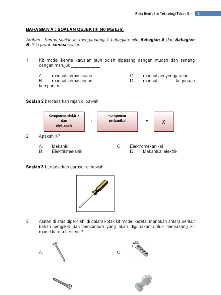 137 downloads 428 views 288kb size. Koleksi Soalan Peperiksaan Akhir Tahun PAT Tahun 5 Jawapan K. Sistem pergerakan kit model yang menggabungkan komponen mekanikal serta elektrik dan elektronik dikenali sebagai sistem __________________.